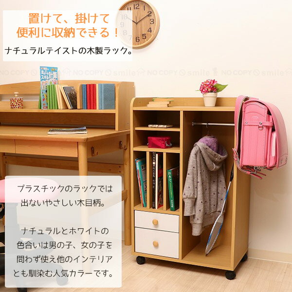 ハンガーラック WH×NA 子供用 キッズ ランドセルラック キッズハンガー 引出し 収納 整理 便利 洋服掛け 子供部屋 プレゼント キャスター付き 北欧風 おしゃれ 送料無料