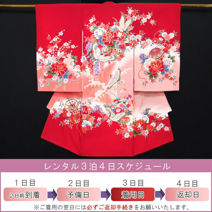 お宮参り レンタル 女の子 着物 貸衣装 帽子 よだれ掛け セット 祝着 正絹 金彩 四季花 花車 飛鶴 古典文様 赤 ピンク 送料無料 一部地域を除く omiyag0020 素 材 産着:正絹 長襦袢:化繊 帽子・よだれ掛け:正絹 安心安全の無ホルマリン加工済み 寸法 身丈:約99cm 袖丈:約58cm 袖口から袖口まで:約93.5cm 帽子サイズ:約45cm 対応月齢 1ヶ月〜3ヶ月くらい 色 産着:華やかな赤とピンクのぼかし 長襦袢:ベビーピンク 帽子・よだれ掛け:ベビーピンク 画像1・4が実際に近いお色です。